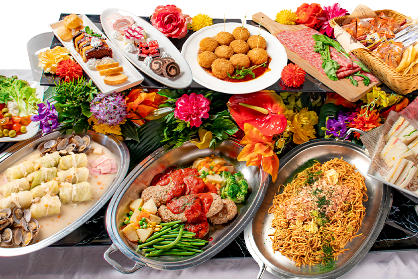 冷製料理はサラダなどライトなメニューを、温製料理はハンバーグや焼きそばなどボリューム感のあるメニューをご用意しました。リーズナブルな価格でカジュアルな打上げなどカジュアルなパーティにおすすめです。