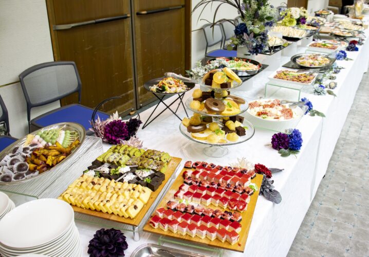さらに、事前打ち合わせ・現地確認・当日のビュッフェテーブルの設営・後片付けまで一貫対応してくれる業者も多く、幹事様はほとんど手を動かさずにイベントを成功へ導けます。