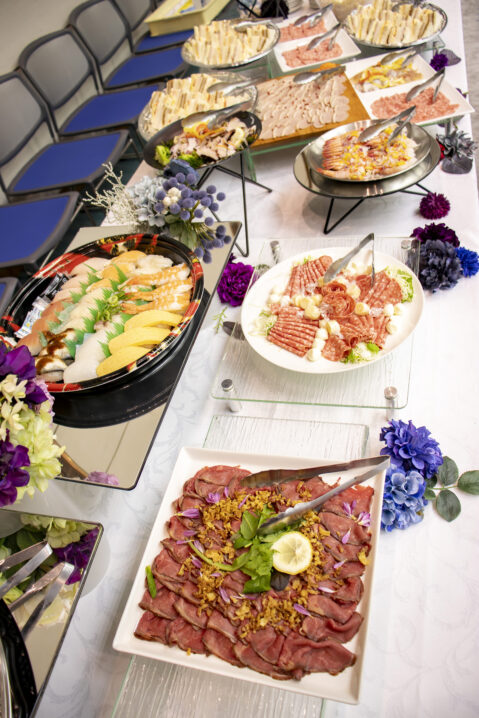 料理だけでなく、ドリンクサービス・スタッフ派遣・備品貸出・ビュッフェテーブルの設営・後片付けまで、